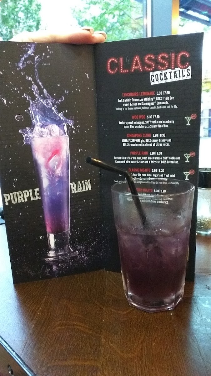 Stolichnaya premium vodka, Bombay Sapphire gin, Havana Club 3 Year Old rum and triple sec, topped with citrus juices and Chambord. To die for!